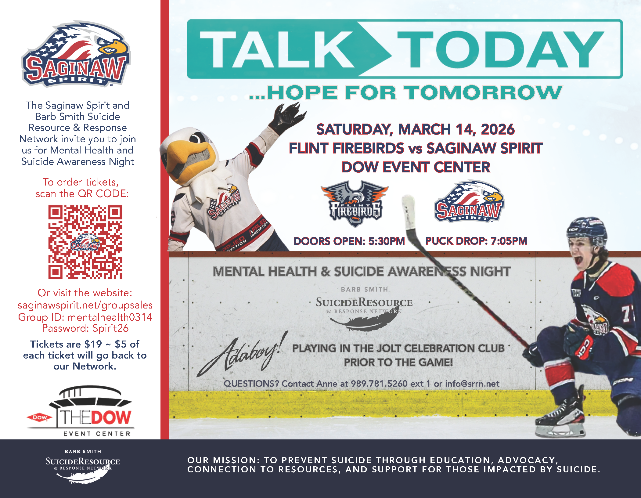 Talk Today…Hope for Tomorrow is a Mental Health awareness night in partnership with the Saginaw Spirit.